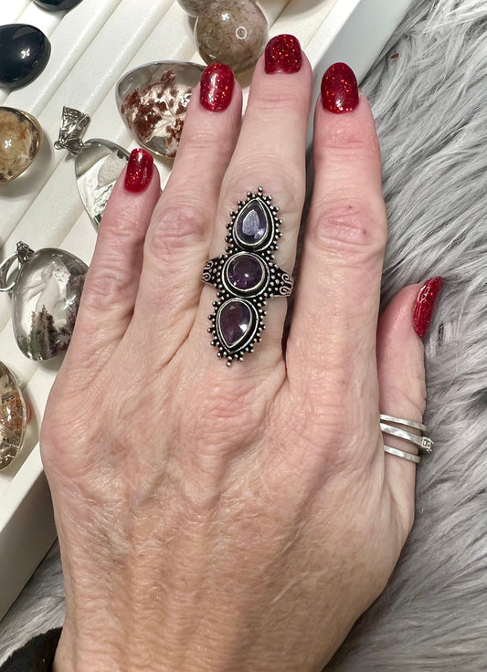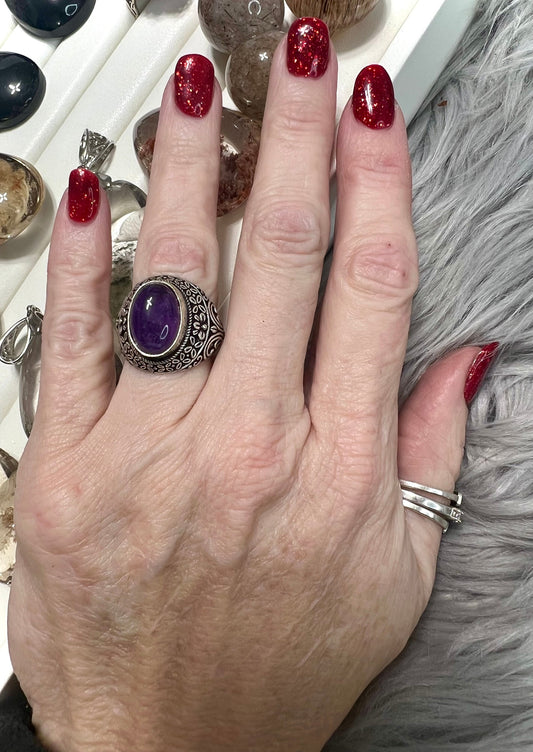 Amethyst Size 6.75 Ring | Vintage Class Style | 925 Silver Ring with Calming Intuitions