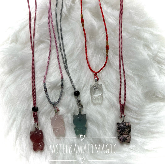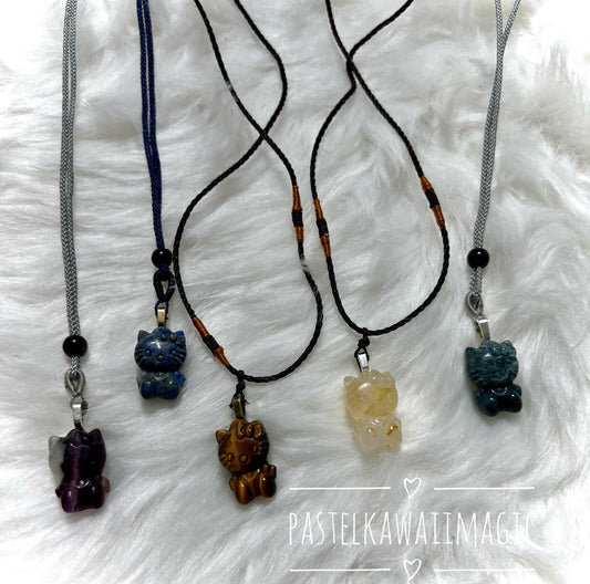 Gemstone Kitty Pendant | Nostalgic Kawaii Crystal HK with Cord Necklace