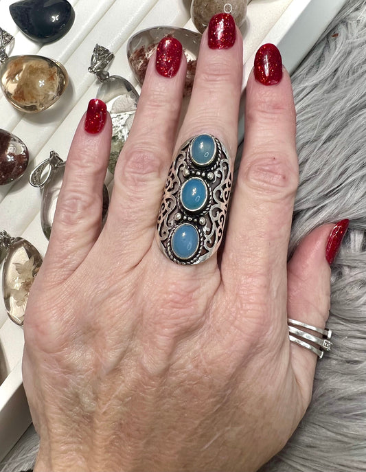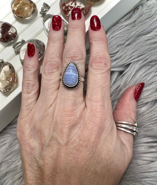 Blue Lace Agate Size 7 Ring | 925 Silver Elegance | Delicate Blue Banded Agate Beautifully Tranquil