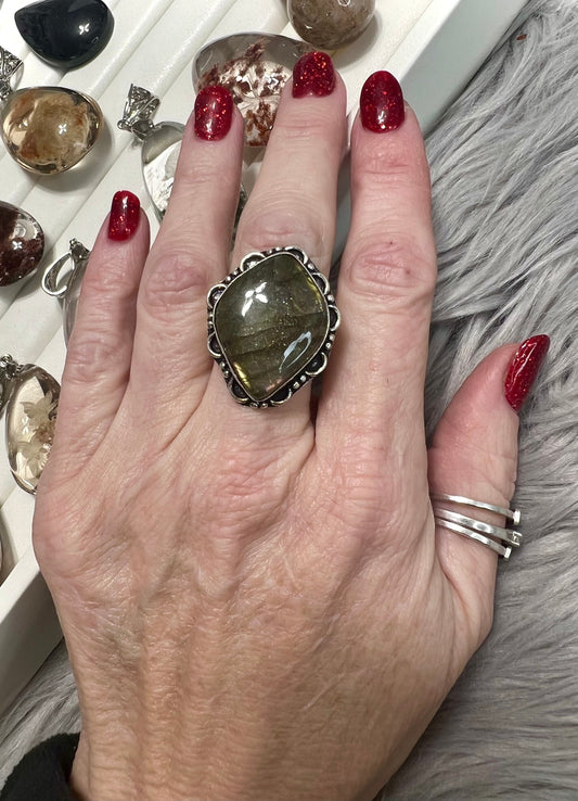 Labradorite Green Flash Size 7.5 Ring | 925 Silver Ring | Alluring Transformation and Protection