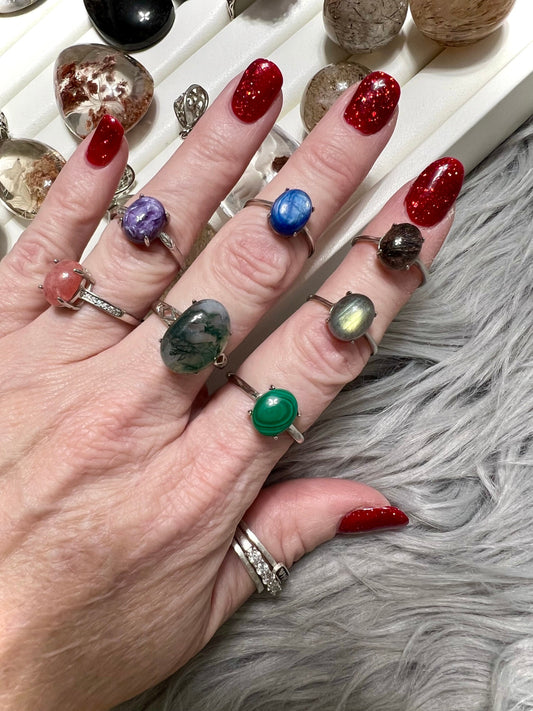 Gemstone Silver Rings | Feminine Dainty High Quality Crystal Adjustable Rings