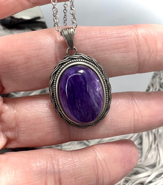 Charoite Silver Pendant Russian | Embracing Spiritual Transformation and Serenity
