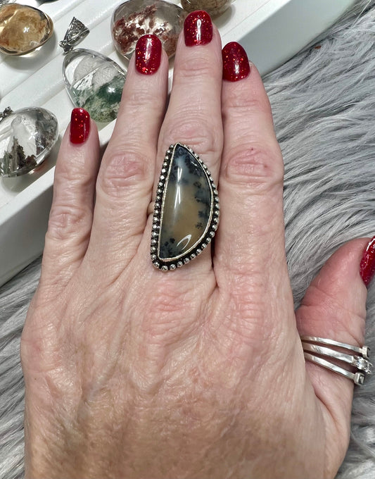 Dendritic Agate Size 8.75 Ring | Handforged 925 Silver Ring | Earth Art with Nurturing Energy