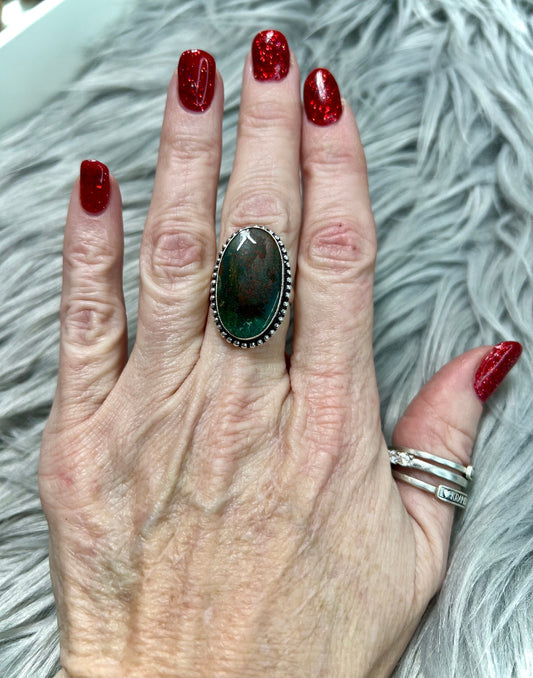 Dragon Bloodstone Size 7.5 Ring | 925 Silver | Mystical Aesthetic of Strength and Vitality