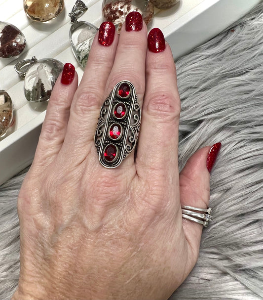 Garnet Size 7.25 | Filagree Ring Faceted | Witchy Aesthetic in 925 Silver