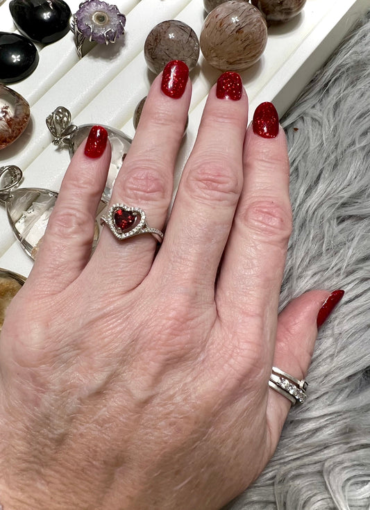 Faceted Heart Garnet Adjustable Ring | Sweetheart Vintage Style 925 Silver | Passion and Love